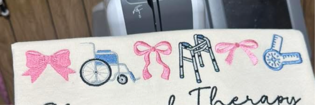 This cute embroidered occupational therapy and bow design is offered on comfort color tees or Gildan Sweatshirts.